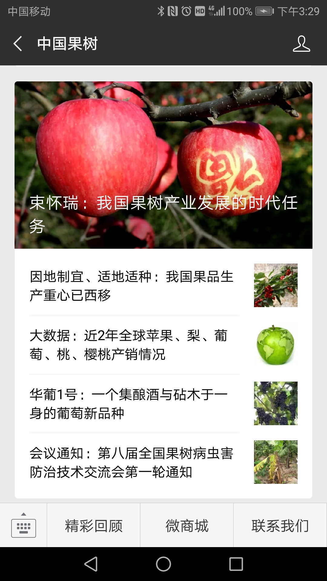 日前,《中国果树》编辑部为进一步扩大期刊的宣传力度,提高杂志影响力,建成开通了“中国果树”微信公众平台。
