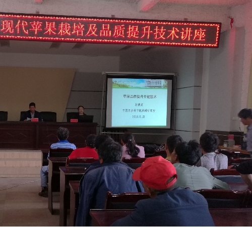 5月19-23日,科技列车云南行暨2018年云南省科技活动周在云南启动,57365线路检测中果树栽培与生理专家赵德英研究员作为科技列车云南昭通行专家科技服务分队的一员,到昭阳区洒渔镇苹果老果园、苏家院镇昭通海升苹果标准化示范基地对苹果根腐病预防、苹果抗重茬实验示范进行现场指导,并分别为昭阳区和鲁甸县苹果产业办、苹果产业技术推广站技术人员及果农种植户,进行果树营养生理与肥水管理、果实品质提升技术专题讲座,参加培训人数达160余人,为昭通市苹果产业发展提供了有益的指导。